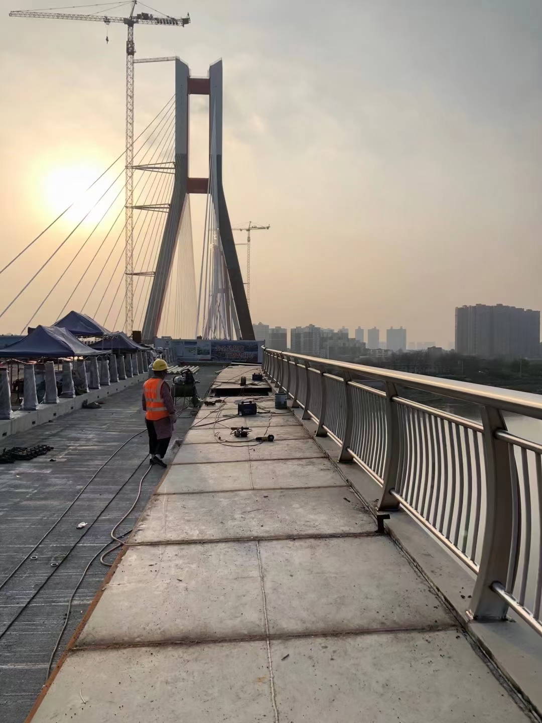 復檢與普通橋梁護欄相比,惡劣環境中不銹鋼復合管護欄表面處理工作不銹鋼復合管護欄的質量要求 不銹鋼復合管護欄管壁厚要均勻、內外表面缺陷少;要配置外表面拋光及內孔缺陷清理設備。不銹鋼復合管護欄生產增加了熱軋毛管酸洗復檢工序,主要是要保證毛管外表面無折疊、裂紋等缺陷,排除掉內表面存在折疊、嚴重劃線、麻面等缺陷的毛管。不銹鋼復合管護欄在所有的不銹鋼復合管護欄生產中是非常重要的工序,退火質量的好壞既影響橋梁護欄的性能也影響氧化鐵皮的清除,不銹鋼復合管護欄需要配置無氧化光亮退火爐設備,酸洗不銹鋼復合管護欄在硫酸酸洗過程中容易形成以Fe2O3Fe3O4為主的黑渣”后續生產中形成表面黑斑。不銹鋼復合管護欄的潤滑應選用樹脂作潤滑劑,這種潤滑與磷化加潤滑(皂化)相比有明顯的區別,拔制出來的橋梁護欄呈現鐵基體的本色,既有高的光潔度又有冷軋管般的漂亮外觀色澤。不銹鋼復合管護欄的表面處理工作 橋梁護欄可以在很多惡劣環境中使用,但是可能會出現銹蝕現象,應該及時處理掉不銹鋼復合管護欄表面的銹,增加使用壽命。下面具體介紹一下不銹鋼復合管護欄的除銹流程。1清洗 利用溶劑、乳劑清洗鋼材表面,以達到去除油、油脂、灰塵、潤滑劑和類似的有機物,但它不能去除鋼材表面的銹、氧化皮、焊藥等,因此在防腐生產中只作為輔助手段。2工具除銹 主要使用鋼絲刷等工具對鋼材表面進行打磨,可以去除松動或翹起的氧化皮、鐵銹、焊渣等。手動工具除銹能達到Sa2級,動力工具除銹可達到Sa3級,若鋼材表面附著牢固的氧化鐵皮,工具除銹效果不理想,達不到防腐施工要求的錨紋深度。3酸洗 般用化學和電解兩種方法做酸洗處理,管道防腐只采用化學酸洗,可以去除氧化皮、鐵銹、舊涂層,有時可用其作為噴砂除銹后的再處理。